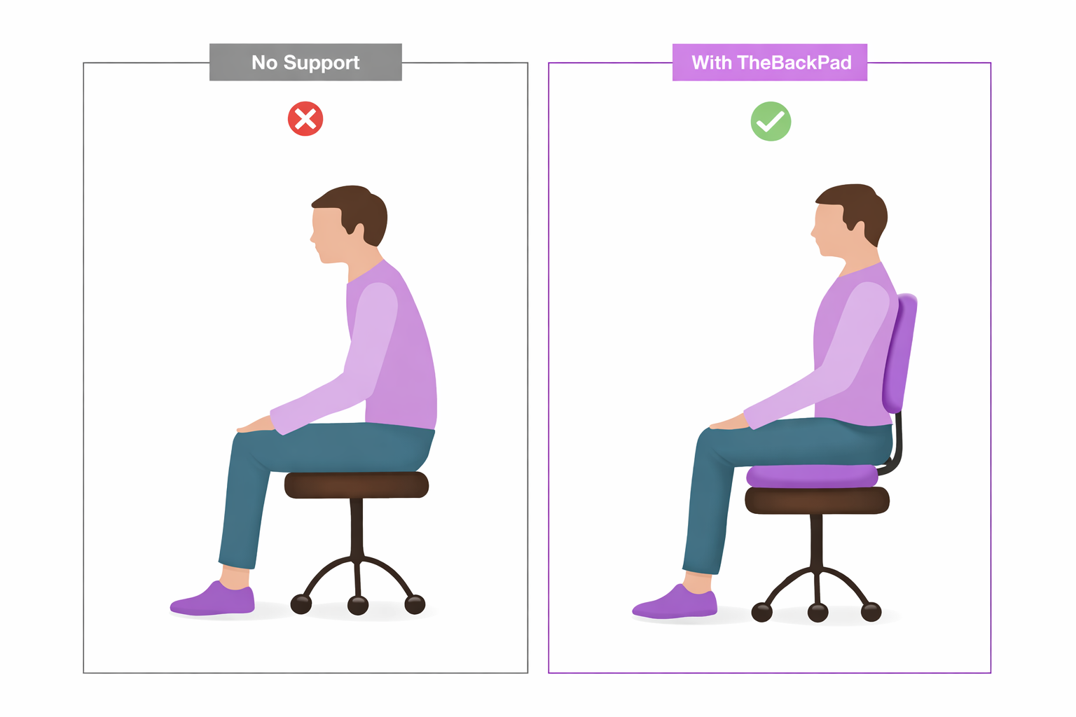 The BackPad™ was created to work with your body, not fight it. No straps. No inflating. No overcorrecting. Just structured lumbar and pelvic support that restores what soft surfaces take away.